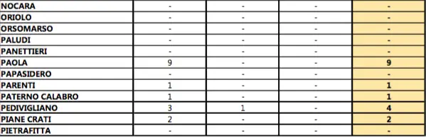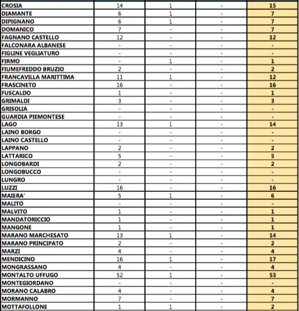 La nuova tabella dei casi (aggiornata alla data di ieri)