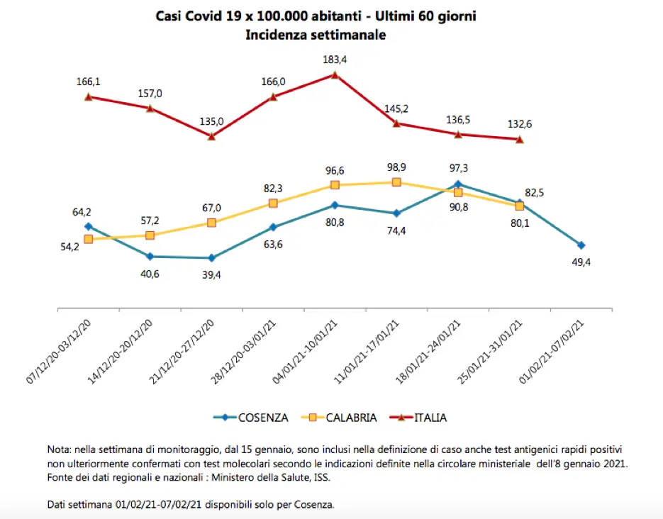 Intanto, in provincia di Cosenza da gennaio 2021 ad oggi sono stati scoperti 1.943 nuovi contagi da coronavirus, mentre è netto il calo degli attualmente positivi, grazie all’alto numero di guariti.