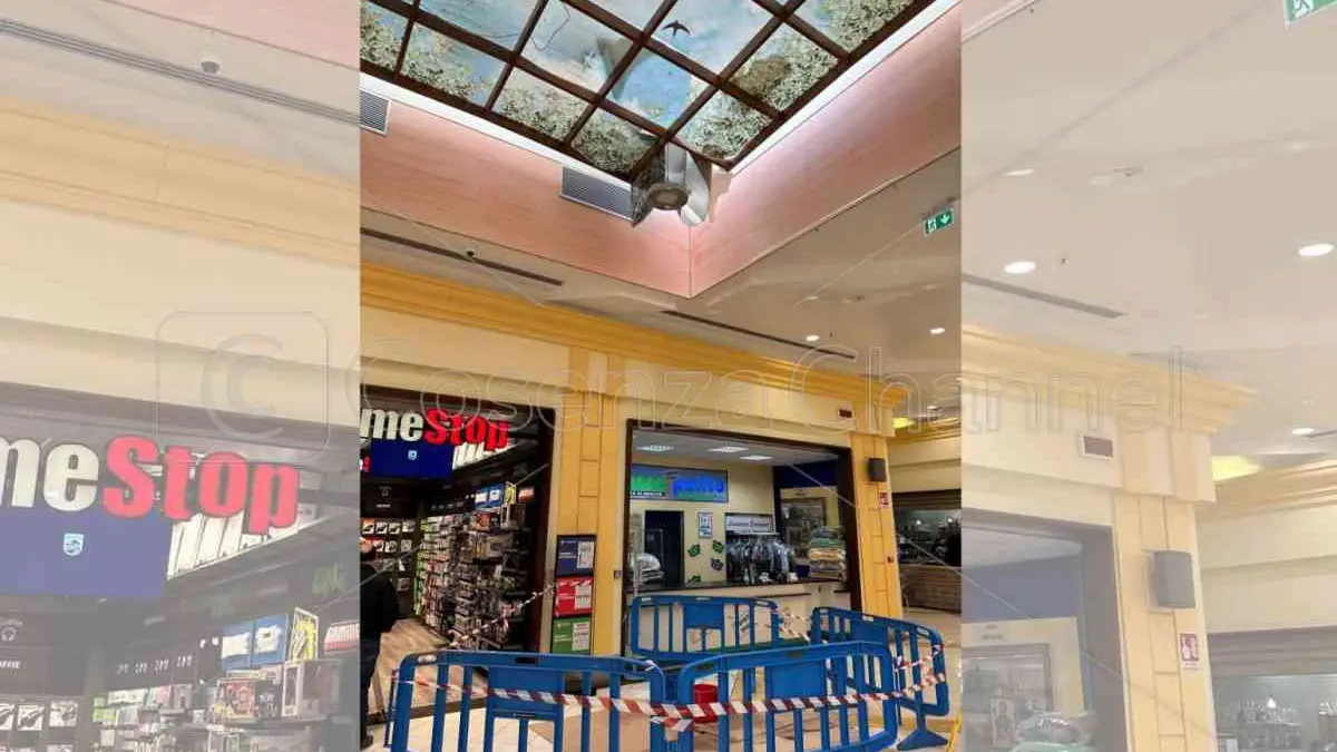 Il giovane, circa 20enne, è sprofondato dalla superficie in vetro e, fortunatamente, non vi erano persone sottostanti.