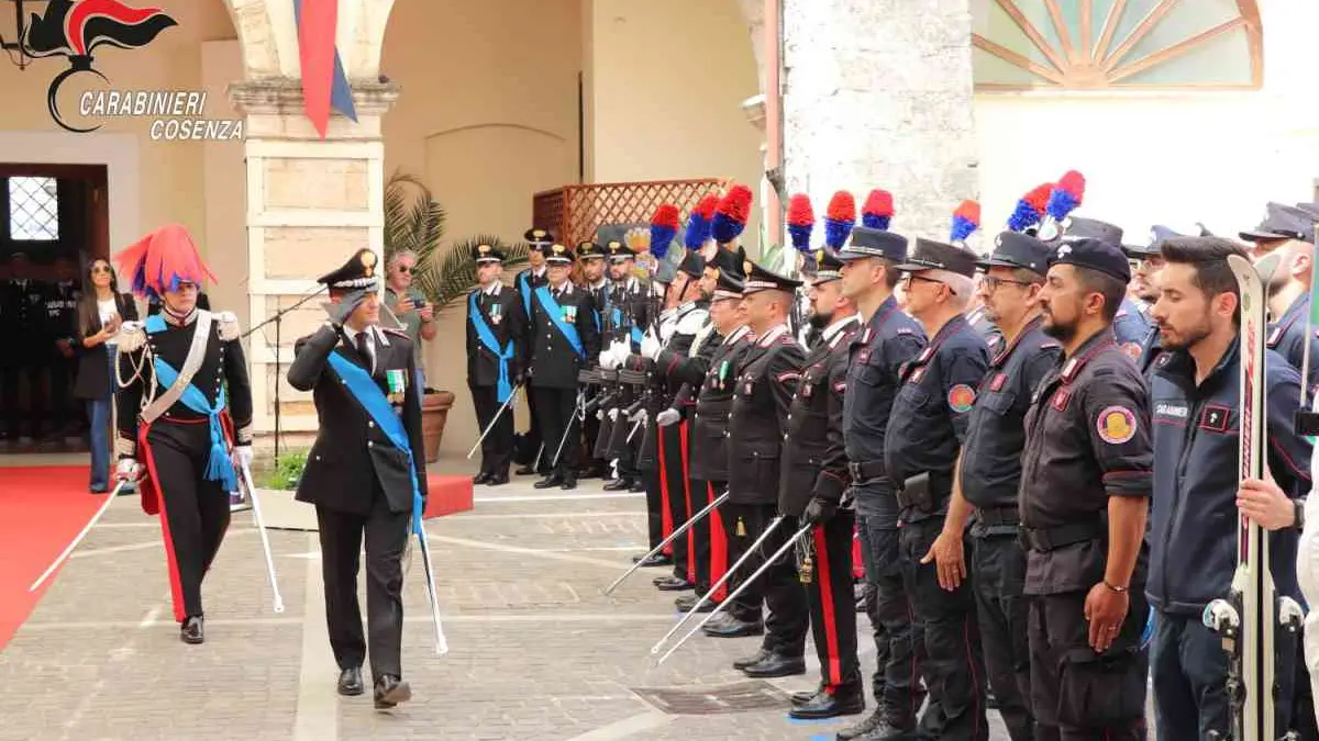 La cerimonia, presieduta dal comandante provinciale dell’Arma dei Carabinieri di Cosenza, colonnello Agatino Saverio Spoto, ha preso il via alle 10.30 con lo schieramento di una formazione in armi, composta da un’aliquota di carabinieri in grande uniforme speciale e, in particolare, tre blocchi composti da una rappresentanza dei comandanti di stazione della linea territoriale, dei comandanti di stazione del comparto forestale, nonché un’aliquota di carabinieri sciatori, artificeri, motociclisti ed effettivi al Comando Carabinieri per la Tutela del Patrimonio culturale.