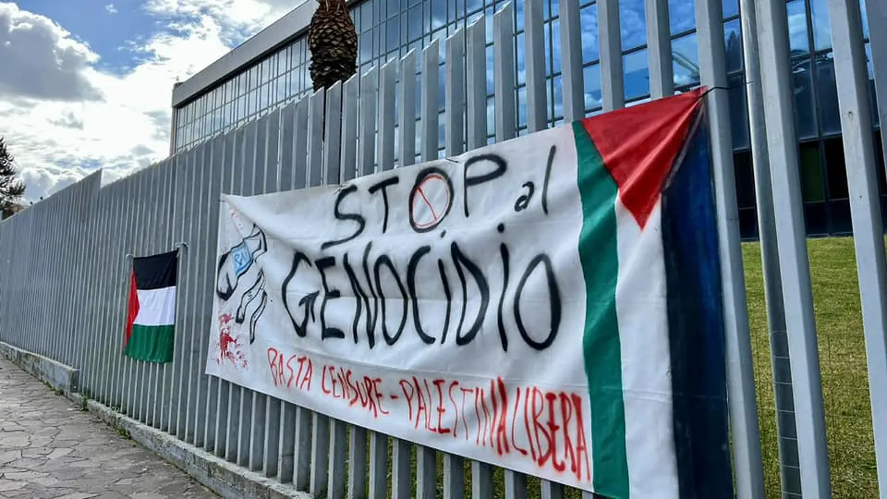 Ieri mattina gli attivisti de “La Base” hanno presidiato la sede Rai di Cosenza per protestare contro l’atteggiamento assunto dai vertici aziendali a Roma in merito al conflitto tra Israele e Hamas dopo quanto accaduto con Mara Venier a “Domenica In”. Una trentina di militanti politici hanno appeso i loro striscioni all’esterno della sede bruzia, scandito slogan e acceso qualche fumogeno rosso. Il tutto sventolando le bandiere palestinesi.