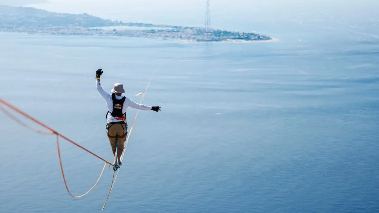 L’atleta Red Bull Jaan Roose è giunto al Pilone di Messina dopo essere partito dal pilone di Santa Trada a Villa San Giovanni, imbragato a 250 metri di altezza, alla volta di un’impresa mai tentata prima: la Messina Crossing, ovvero attraversare i 3.600 metri dello Stretto di Messina su un nastro di 1,9 centimetri di larghezza. Roose, che ha ricevuto una granita al suo arrivo, si è detto «molto felice per l’impresa».