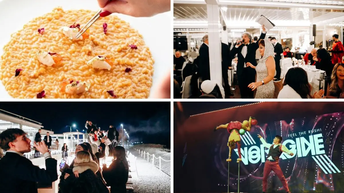 Il Capodanno al Riva non si limita alla tavola. L’intrattenimento è pensato come un vero State Dinner americano, con un allestimento ispirato ai grandi gala presidenziali: ingresso scenografico, accoglienza con mise eleganti, luci soffuse, drappeggi chiari e dettagli dorati a ricreare l’allure delle sale della Casa Bianca.