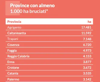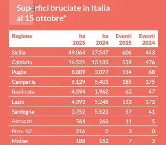 Incendi in provincia di Cosenza nel 2025: dati e classifica provinciale