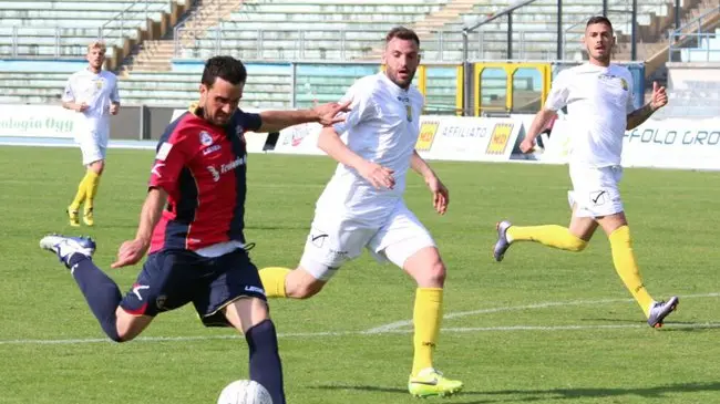 Roselli manda in campo una formazione che può tranquillamente definirsi titolare, anche se gli mancano Corsi e Vutov squalificati, più Ciancio infortunato. L’unica novità rispetto al normale è l’inserimento di Saracco in porta al posto di Perina. In difesa spazio a Blondett e Pinna sulle corsie laterali, con Di Nunzio-Tedeschi in mezzo. A centrocampo Criaco e Statella sulle ali, Caccetta in mediana al fianco di Arrigoni. Con Arrighini in attacco c’è La Mantia. Ischia con uno strano 4-4-2: in avanti Gomes e Pepe