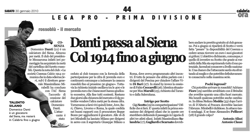 La cessione di Domenico Danti avvenne nel gennaio del 2010. Il ds Mirabelli si accordò con Mezzaroma per 300mila euro per la comproprietà. A giugno la cifra complessiva incassata per il 100% del cartellino fu di 800mila euro dilazionata in più rate di pagamento. Andando indietro nel tempo si ritorna in Serie B. Estate del 2002, si viaggia sull’allora A3 in direzione Reggio Calabria. Dopo una stagione importante, Nassim Mendil fu ceduto tra le proteste dei tifosi all’odiata Reggina di Lillo Foti. Il presidente Pagliuso, ancora oggi legato da forte amicizia al suo corrispettivo amaranto, chiuse sulla base di un milione di euro e il cartellino di Casale. A guadagnarci, visto il rendimento del francese, fu soltanto il vecchio numero uno del 1914.