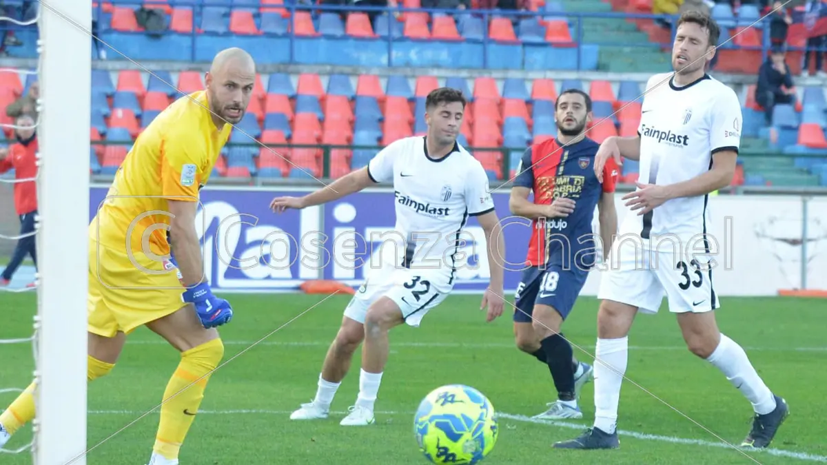 La risposta dei Lupi è una punizione di Brignola che si stampa sulla traversa: il gesto tecnico avrebbe meritato migliore sorte. E’ però il segnale ad aumentare i giri del motore e dare maggiore intensità dalla cintola in su. Facendolo, il Cosenza corre un rischio enorme al 35’ con Collocolo che, indisturbato, non impatta bene su un perfetto traversone di Falasco. Prima del break Merola ha sul destro la palla dell’1-1, ma la spreca graziando la retroguardia marchigiana.