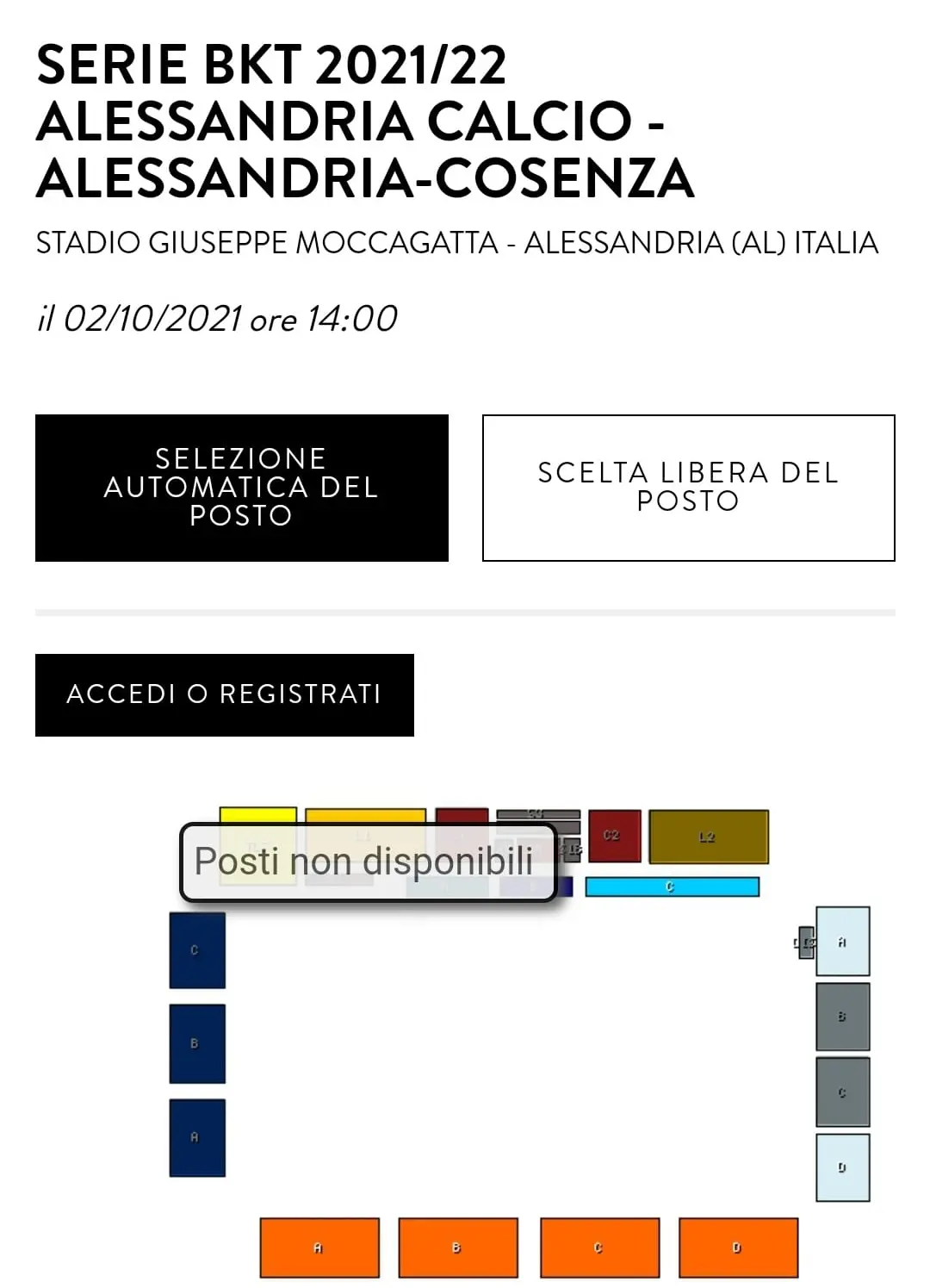 Entusiasmo alle stelle, tanto che i biglietti del settore ospiti dello stadio Moccagatta di Alessandria sono stati polverizzati. I sostenitori del Cosenza li hanno resi sold-out in appena due ore di prevendita. E’ stata una vera e propria corsa telematica per accaparrarsi un tagliando valido. Il club piemontese aveva diramato ieri pomeriggio il comunicato con cui dava il via alla prevendita, ma soltanto da oggi, più o meno alle 15, è stato possibile acquistare il proprio ticket. Chi ha provato a farlo dopo le ore 17 è stato rimbalzato fuori dal circuito Vivaticket, a margine della dicitura “posti non disponibili”.