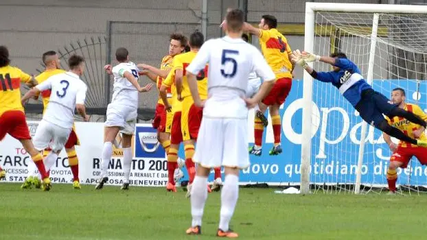 Cosenza in attacco su calcio piazzato durante il match del Santa Colomba (beneventocalcio.it)