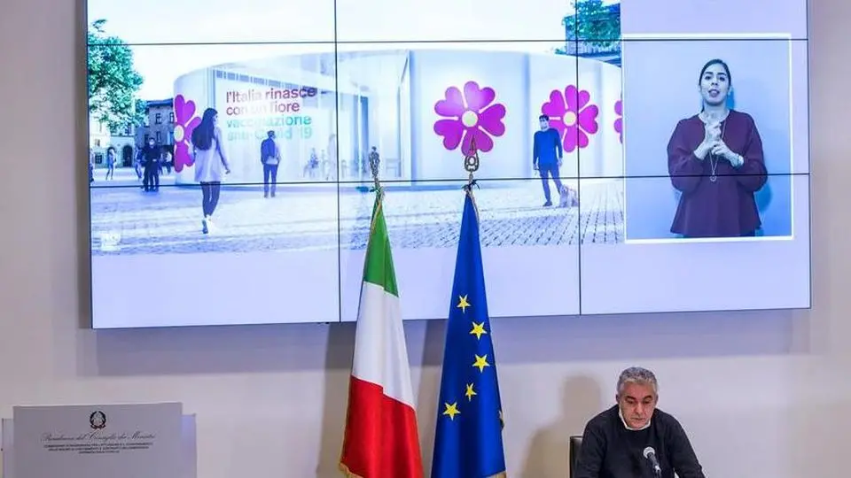 «Le primule, questi fiori che si stagliano nelle nostre piazze», simbolo della campagna di vaccinazione anti-Covid-19 e forma dei padiglioni in cui verranno effettuate le vaccinazioni, «ci lascia ancora più convinti che la luce in fondo al tunnel comincia a intravedersi». Così il commissario straordinario all’emergenza coronavirus, Domenico Arcuri, che ha presentato la campagna di vaccinazione.