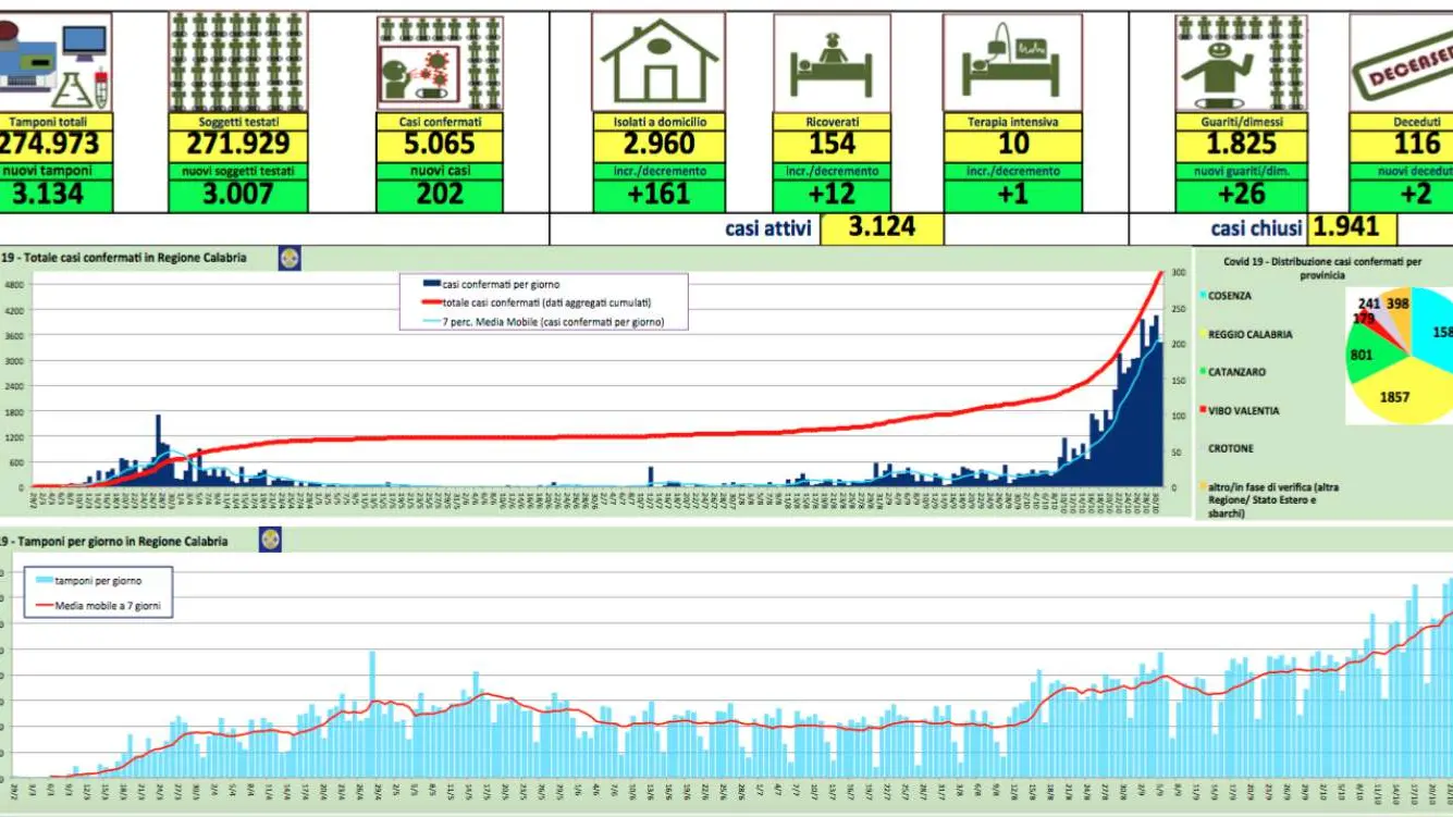 Sono 202 i nuovi casi di coronavirus in Calabria. Aumentano i ricoveri negli ospedali. Le persone negative ad oggi sono oltre 266mila.