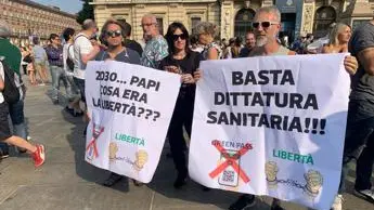 “Non mi farò mai iniettare un siero sperimentale per accontentare una società malata”, “No Green Pass, sì cure domiciliari “, “spegni la tv, accendi il cervello”: sono alcuni dei manifesti apparsi in piazza. Non solo striscioni, anche cori e urla: al grido di “resistenza”, “libertà” centinaia di persone manifestano la loro contrarietà a quanto deciso dal governo Draghi.