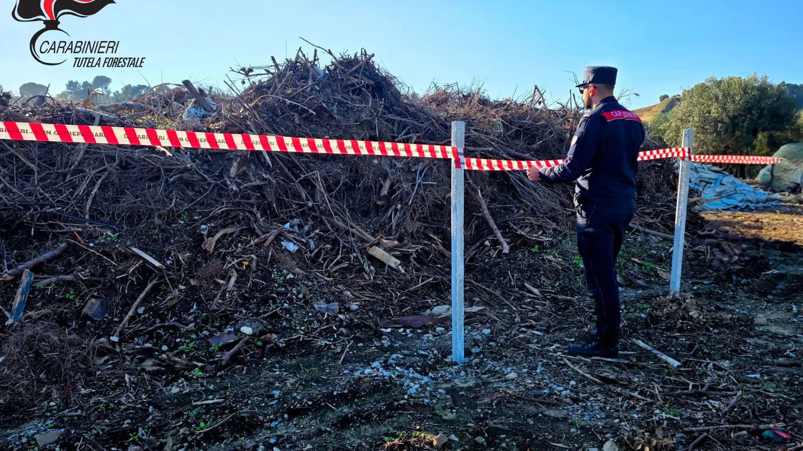 I rifiuti erano costituiti da residui provenienti dalle potature di essenze forestali ed esotiche, frammisti a terra e altri rifiuti di vario genere, quali bottiglie, buste e residui in plastica. Inoltre, sempre sullo stesso terreno erano presenti due ulteriori cumuli di circa 10 metri cubi ciascuno, uno costituito da rifiuti provenienti da attività edilizia e l’altro costituito da rifiuti di prodotti del legno come porte dismesse, pannelli in truciolato, pedane e listelli.