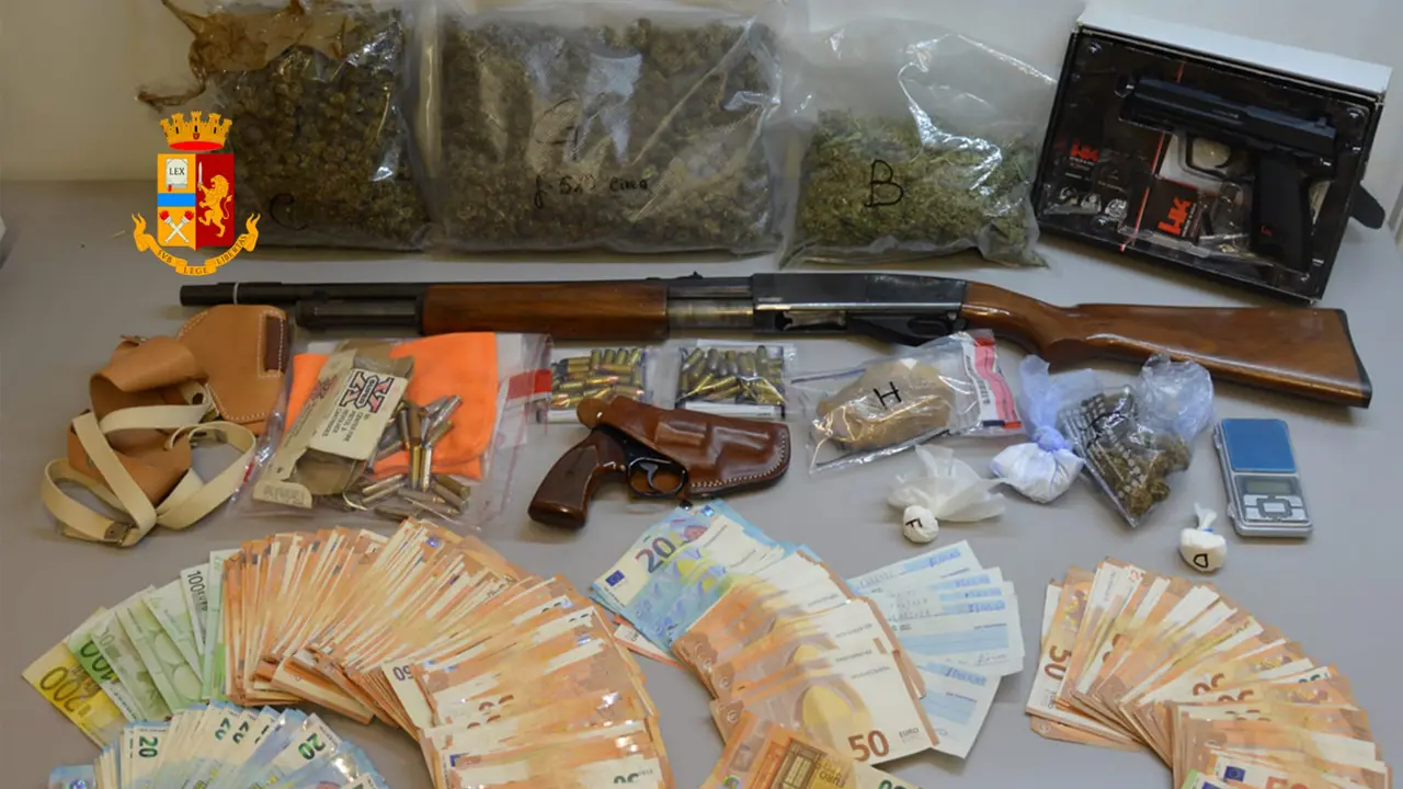 La perquisizione veniva pertanto estesa presso l’abitazione di Bisignano, dove, occultati in un armadio ed in un mobile, venivano rinvenuti quasi 2 kg di sostanza stupefacente del tipo marijuana, nonché ulteriori 15 grammi di cocaina, un bilancino di precisione e del materiale utile al confezionamento, mentre in un sottoscala gli agenti rinvenivano e sequestravano un fucile a pompa marca Springfield cal. 12 con matricola abrasa, un revolver marca Colt cal. 38 anch’esso con matricola abrasa e moltissime cartucce cal. 38, cal. 357 magnum, cal. 9×21 e cal. 9×19.