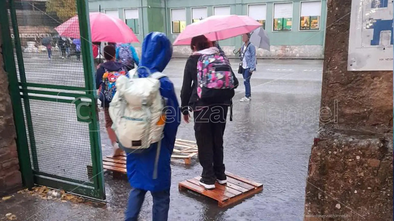 La segnalazione è arrivata questa mattina da due coppie di genitori. I loro figli, studenti iscritti alla scuola media di via Negroni, vivono dei disagi ogni qual volta su Cosenza si registrano piogge di una certa intensità. Come si evince dallo scatto pervenuto in redazione, l’ingresso secondario obbligatorio di via Lazio risulta allagato al punto che i ragazzi sono costretti ad avanzare lungo delle pedane di emergenza. Una situazione non più tollerabile per le famiglie che si chiedono come tutto ciò sia possibile nel 2023.