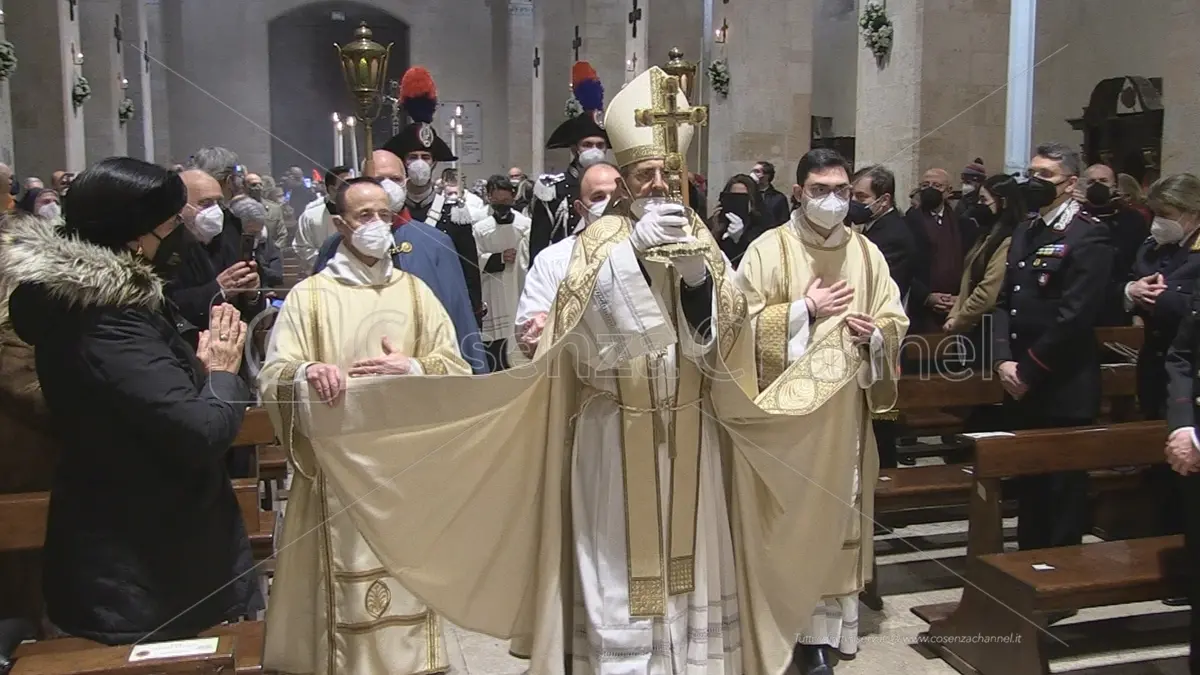 Campane a festa e fuochi d’artificio per l’inizio del Giubileo Diocesano in occasione degli ottocento anni dalla consacrazione del Duomo di Cosenza, risalente al 30 gennaio 1222. Il passaggio attraverso la Porta Santa della Cattedrale di Cosenza, emblema del percorso verso la salvezza e verso Cristo, ha ufficialmente dato il via alle celebrazioni officiate dall’arcivescovo Francesco Nolè con la partecipazione del nunzio apostolico, monsignor Emil Paul Tscherrig.