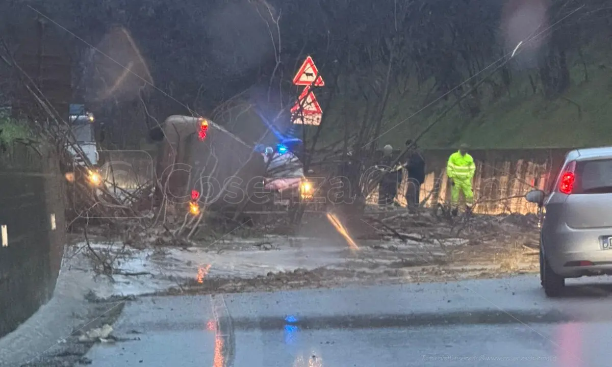 Un'importante frana ha isolato il comune di Pedace, nella Presila cosentina. Interventi in corso per ripristinare la viabilità.
