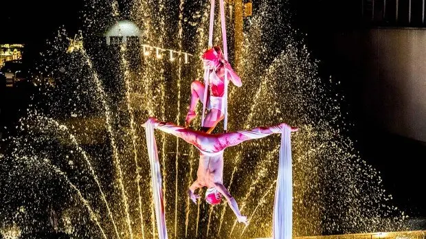 Il tema è la connessione tra le meraviglie rappresentate dalla disseminazione di opere artistiche lungo corso Mazzini e le meraviglie della luna, per un continuo scambio tra cielo e terra, per uno spettacolo diffuso ad opera di 10 acrobati, impreziosito da costumi luminosi e performance, grazie alla presenza di una compagnia tra le prime al mondo del Teatro acrobatico aereo.