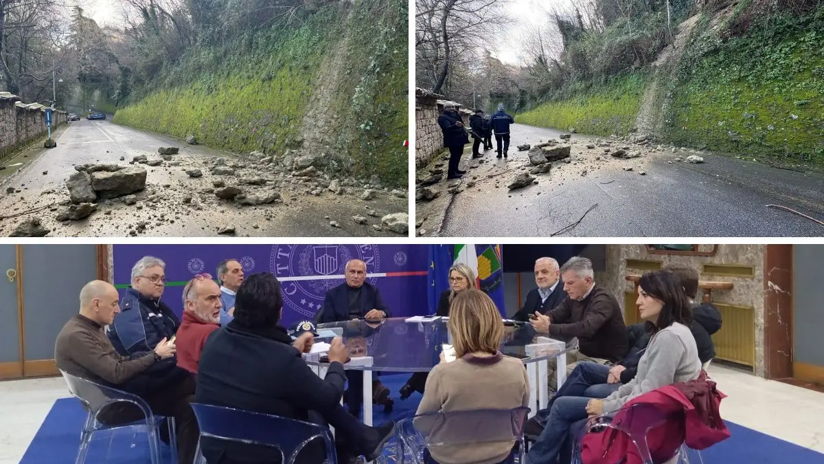 Dopo lo smottamento con caduta di massi, il Comune di Cosenza avvia monitoraggi geologici e procedure urgenti per la messa in sicurezza e la riapertura della strada