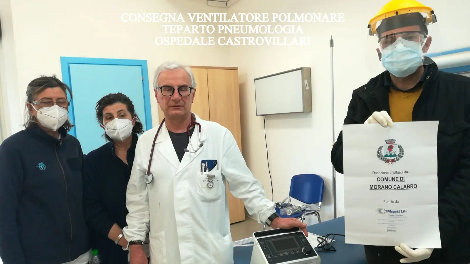 Atto di aiuto tangibile e rapido al sistema sanitario regionale da parte del Comune di Morano. Quanto annunciato nei giorni scorsi a seguito della rinuncia volontaria degli amministratori – del sindaco Nicolò De Bartolo, del suo vicario Pasquale Maradei, degli assessori Mariagrazia Verbicaro, Sonia Cozza e Francesco Soave – all’indennità di funzione da aprile a dicembre 2020, decisione approvata nella riunione telematica di Giunta n° 21 del 27 marzo scorso, tenuta nel rispetto delle normative in materia di contenimento e gestione del contagio da Covid-19, riguardante l’acquisto di un ventilatore polmonare alla Pneumologia dell’ospedale di Castrovillari, si è concretizzato nella mattinata di oggi con l’effettiva consegna dello strumento al dr. Nicola Schifino, responsabile del reparto.