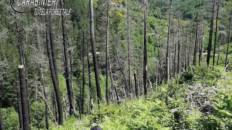 A seguito di un controllo si è accertato che in due aree distinte di questa zona sono state tagliate piante di alto fusto di abete e pino laricio. In particolare 93 piante di abete di Douglas e 202 di Pino laricio con diametro variabile da 25 a 80 cm. Da successive indagini effettuate dalla stazione Carabinieri Forestale, è emerso che il taglio delle piante è stato realizzato in assenza delle necessarie autorizzazioni da una dita boschiva di Luzzi su incarico del Comune di Rose con la motivazione che a seguito dell’incendio gli alberi erano pericolanti.