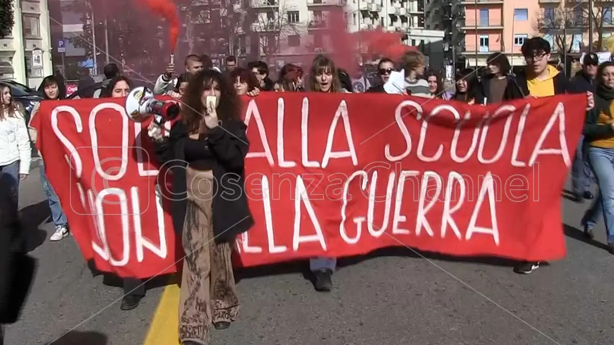 «Abbiamo deciso di manifestare a Cosenza così come in diverse altre piazze d’Italia – spiega Cristina Gaudio, studentessa del Liceo Scorza e militante FGC -. Vogliamo esprimere la nostra contrarietà al conflitto, che vede contrapporsi due potenze imperialiste. Da una parte la Russa, dall’altra il blocco Usa-Nato. In più siamo qui per urlare il nostro no alle spese militari che il Governo ha stanziato, sposando così le posizioni della Nato. Contestualmente si effettueranno ulteriori tagli all’istruzione pubblica, dopo che tra il 2020 e il 2021 erano stati già tagliati 2,5 miliardi per le scuole. Tutto ciò è inaccettabile davanti alle condizioni in cui versano i nostri istituti».