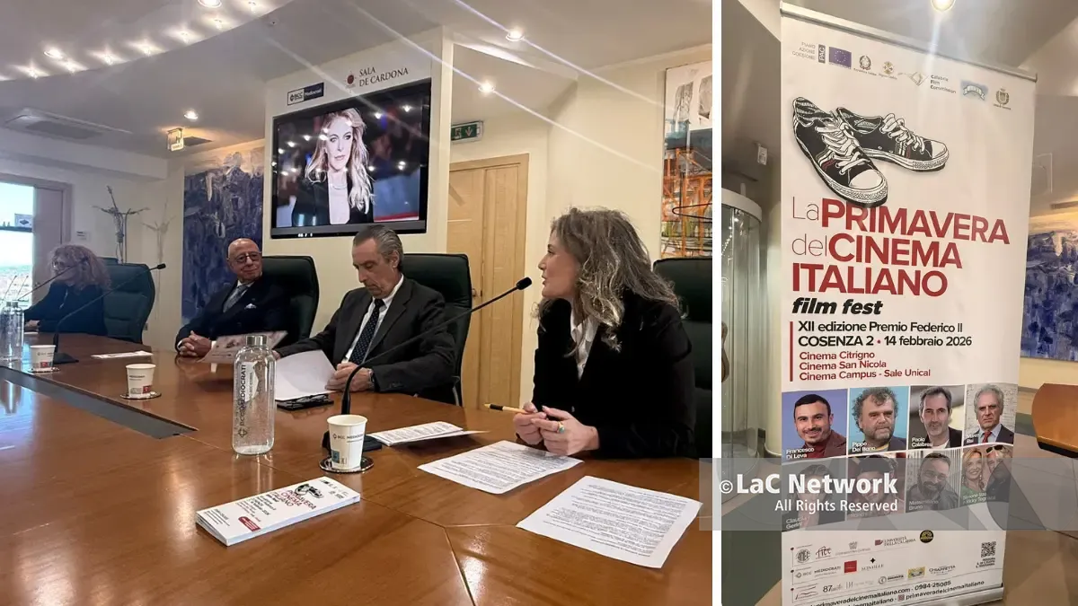 La nuova edizione de La Primavera del Cinema Italiano – Premio Federico II, ideata da Pino Citrigno, è stata presentata questa mattina nella sede della BCC a Rende con una notizia anche per la città: a marzo aprirà il Cinema Italia Tieri che inaugurerà con una grande sorpresa. La rassegna si svolgerà dal 2 al 14 febbraio 2026 nelle sale del Cinema Citrigno, del Cinema San Nicola e del Cinema Campus–Unical, confermandosi come un appuntamento solido e riconoscibile, attento alla memoria del cinema italiano e allo scouting di nuovi talenti.