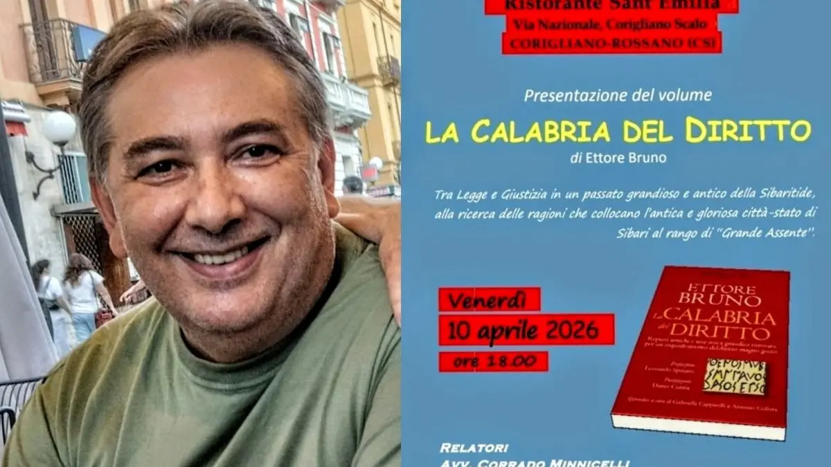 Sarà Corigliano-Rossano a ospitare la presentazione di “La Calabria del diritto”, il libro di Ettore Bruno che ricostruisce gli albori, sulla costa ionica calabrese, del modello giuridico continentale europeo. L’appuntamento è fissato per venerdì 10 aprile al ristorante Sant’Emilia, in un incontro che porterà al centro del dibattito il legame tra Calabria antica, diritto e civiltà europea.