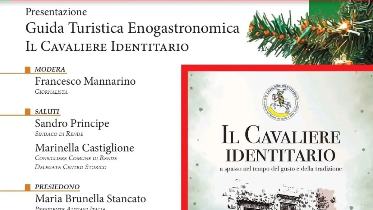 Un percorso che intreccia memoria, tradizioni, sapori e comunità, raccontando la Calabria attraverso le storie delle persone che ne custodiscono l’identità. Sarà presentata lunedì 15 dicembre alle ore 17.30, presso il Museo Civico di Rende, la guida turistica ed enogastronomica “Il Cavaliere Identitario”, progetto ideato e realizzato da Anziani Italia e dall’Volare APS.