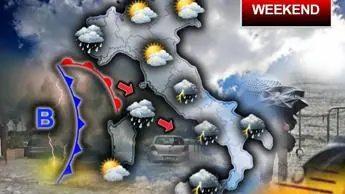 - Sabato 4. Al nord: molte nubi in Emilia Romagna, qualche rovescio sulle Alpi occidentali. Al centro: rovesci e temporali su Lazio, Marche meridionali, Abruzzo, Umbria e Molise. Al sud: maltempo su Campania, Calabria, Sicilia, poi Basilicata e Puglia.