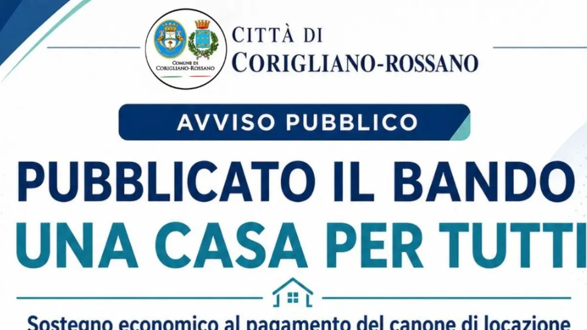 È stato pubblicato sull’Albo pretorio del Comune il nuovo avviso pubblico del progetto “Una Casa per tutti”, l’iniziativa pensata per offrire un sostegno economico al pagamento del canone di locazione ai cittadini dell’ATS Corigliano-Rossano che vivono condizioni di fragilità socio-economica.