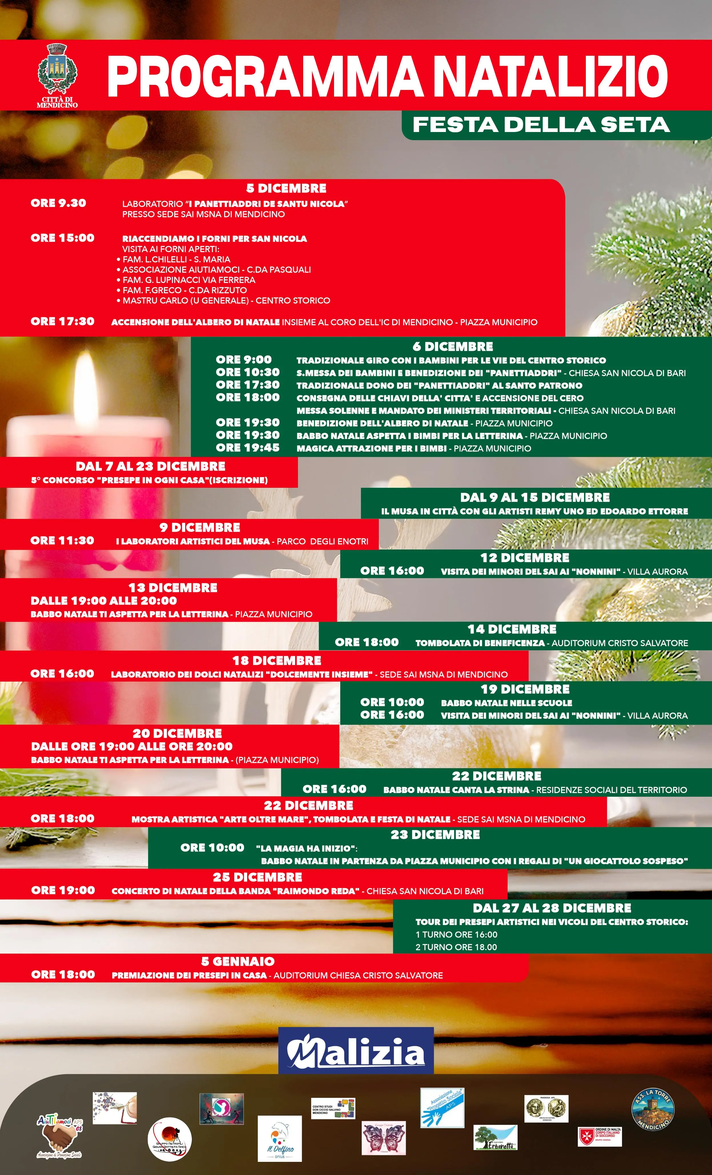 Il Programma Natalizio 2025 – Festa della Seta si presenta dunque come un percorso che valorizza la bellezza del territorio e la capacità di ritrovarsi, trasformando il mese di dicembre in un tempo di celebrazione, condivisione e riscoperta delle radici. L’Amministrazione invita cittadini e visitatori a partecipare agli eventi e a vivere insieme la magia del Natale mendicinese.