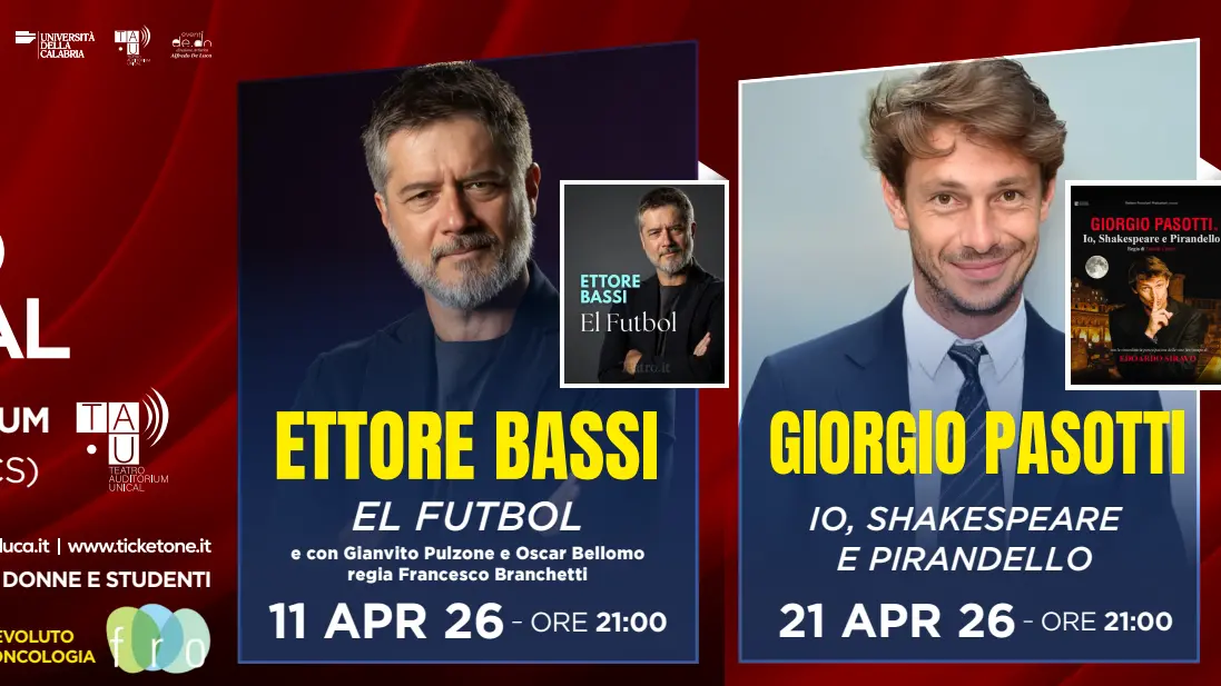 Il primo appuntamento è fissato per sabato 11 aprile alle ore 21 con “El Futbol”, in scena Ettore Bassi insieme a Gianvito Pulzone e Oscar Bellomo, per la regia di Francesco Branchetti. Il secondo è in programma martedì 21 aprile, sempre alle 21, con “Io, Shakespeare e Pirandello”, interpretato da Giorgio Pasotti.