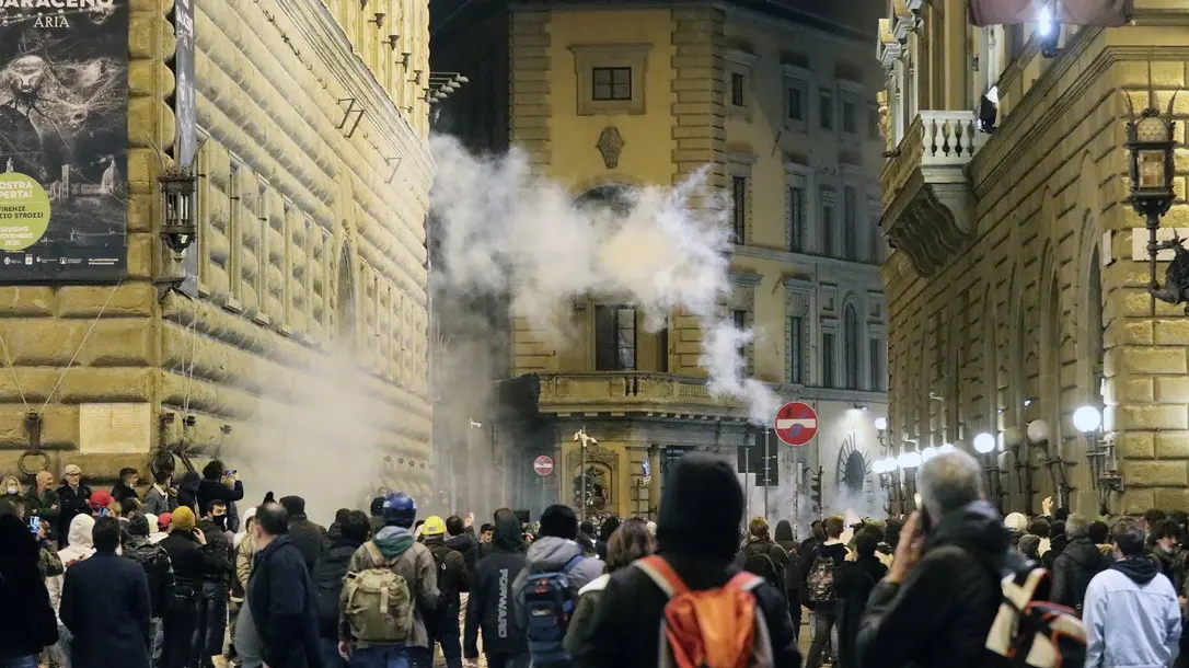 E mentre alcuni dei manifestanti scesi in piazza con intenti pacifici preferivano abbandonare la protesta, altri hanno continuato nei disordini, facendo esplodere bombe carta, rovesciando fioriere e bidoni e lanciando bottiglie di vetro. La composizione della protesta sarebbe eterogenea, con presenze che vanno dall’estrema destra all’area dell’antagonismo. Alcune persone, almeno due, sono state fermate. Il centro storico di Firenze è stato messo a soqquadro e un’auto della polizia è stata danneggiata, sfondandone il vetro. Le forze dell’ordine hanno usato i fumogeni per disperdere la folla.