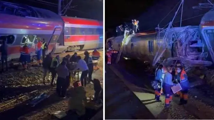 Diverse carrozze di un treno Iryo in viaggio da Malaga a Madrid con 300 passeggeri a bordo sono deragliate e si sono scontrate con un treno Alvia che viaggiava nella direzione opposta con 184 persone a bordo, diretto a Huelva. Diverse carrozze di questo secondo treno sono poi precipitate da un terrapieno di quattro metri, ostacolando l'accesso ai soccorsi, secondo il ministro della Presidenza andalusa.