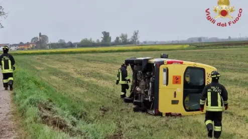 L’incidente è avvenuto intorno alle 14. Per cause ancora in fase di accertamento, il mezzo ha perso il controllo, uscendo dalla carreggiata e ribaltandosi lateralmente su un campo.