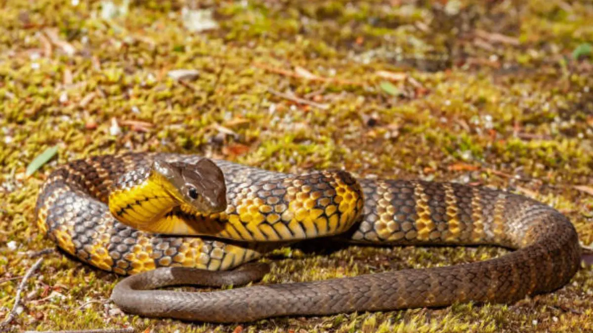I serpenti tigre, chiamati così per le loro strisce colorate, sono tra i serpenti più velenosi al mondo. Lunghi circa un metro, hanno un corpo spesso e rispondono alle minacce sollevandosi da terra e appiattendo la testa e il collo.