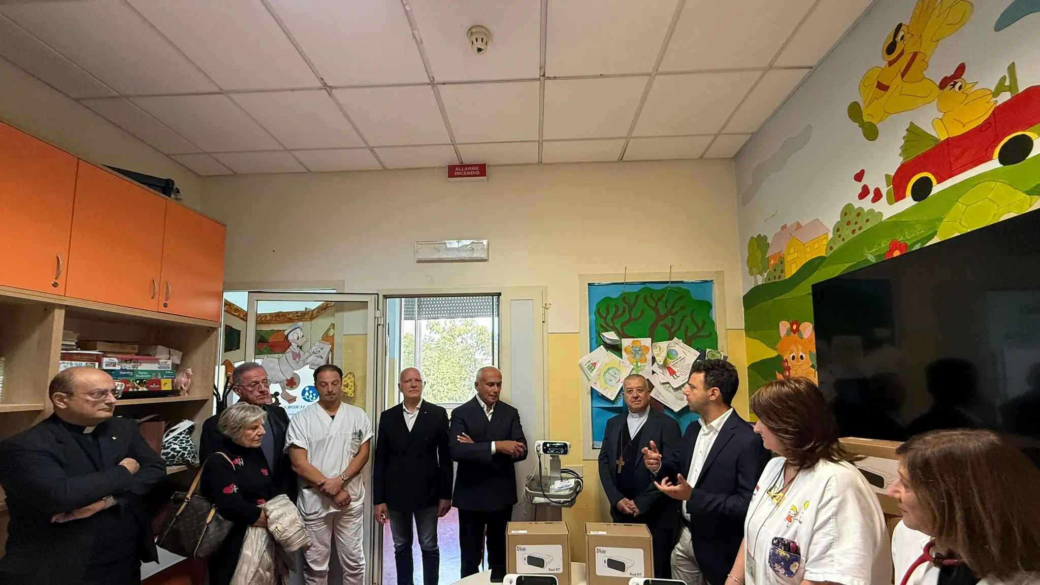 Alla sobria cerimonia di consegna delle importanti attrezzature mediche hanno partecipato il sindaco Franz Caruso, il vescovo Giovanni Checchinato e alcuni parroci della città