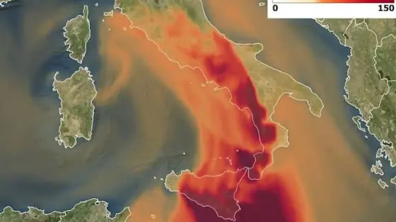 Le mappe elaborate dal programma europeo Copernicus confermano un’elevata concentrazione di polveri sahariane sulla Calabria, destinata a persistere almeno nelle prossime ore.