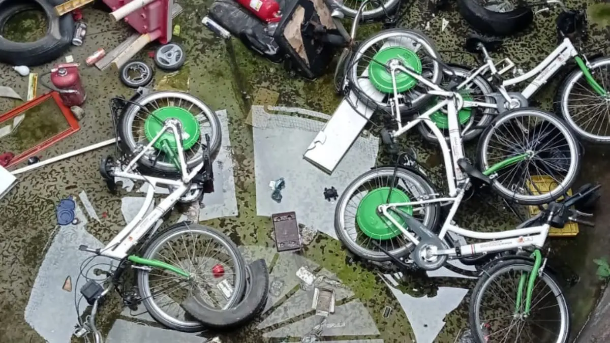Se nel 2018 ci chiedevamo che fine avessero fatto le biciclette a pedalata assistita, oggi abbiamo una risposta alla nostra domanda: sono finite in quella che, a tutti gli effetti, è una discarica abusiva all’interno degli spazi del municipio. Le immagini parlano da sé. Una parte di quelle 30 green bike, acquistate dall’allora Comune di Rossano per un costo di 60 mila euro, utili già allora a sostenere il complesso processo della transizione ecologica, è stata smaltita abusivamente. Dove? Nel pozzo luce del parcheggio multipiano comunale di viale Aldo Moro insieme a copertoni d’auto, vecchi estintori e altri oggetti di plastica. Giacciono lì, non si sa da quanto tempo, in un melmoso acquitrino; un cimitero di rottami nel cuore della città.