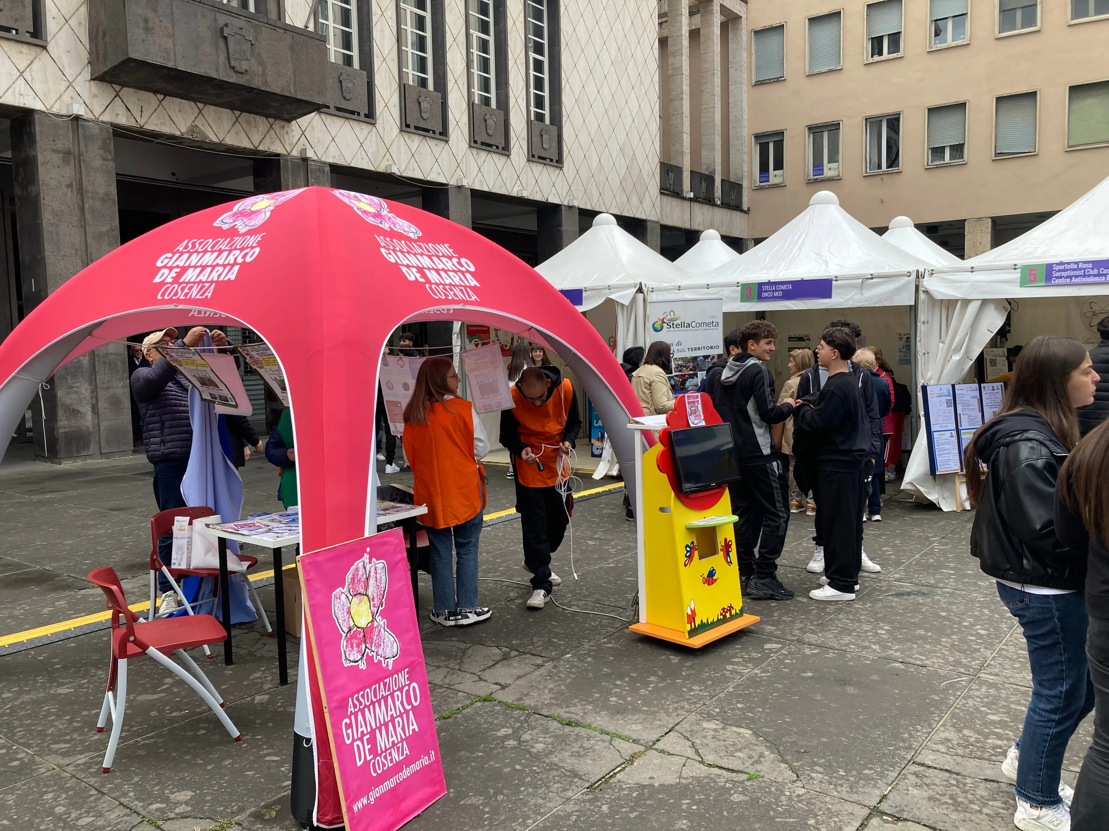 È partita ufficialmente questa mattina in piazza dei Bruzi l’iniziativa “Cosenza città in salute”, promossa dal Comune di Cosenza e dall’assessore alla Salute Maria Teresa De Marco per diffondere la cultura della prevenzione e promuovere stili di vita sani. Il sindaco Franz Caruso ha tagliato il nastro inaugurale e visitato le numerose postazioni allestite in piazza: ambulatori mobili, gazebo e stand informativi di associazioni e strutture sanitarie che, per tre giorni, offriranno screening gratuiti e visite specialistiche alla cittadinanza.