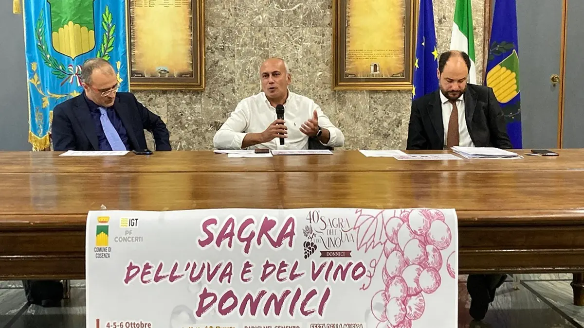 È stato presentato questa mattina a Palazzo dei Bruzi il programma della 40° edizione della “Sagra dell’uva e del vino”. Il clou della manifestazione si svolgerà nel borgo antico di Donnici dal 7 al 9 ottobre prossimi, ma sarà preceduto da un’anteprima, dal 4 al 6 ottobre, che porterà in città una serie di iniziative legate all’evento. L’appuntamento ritorna ad allietare le serate dei cosentini a tre anni dallo stop imposto dalla pandemia.