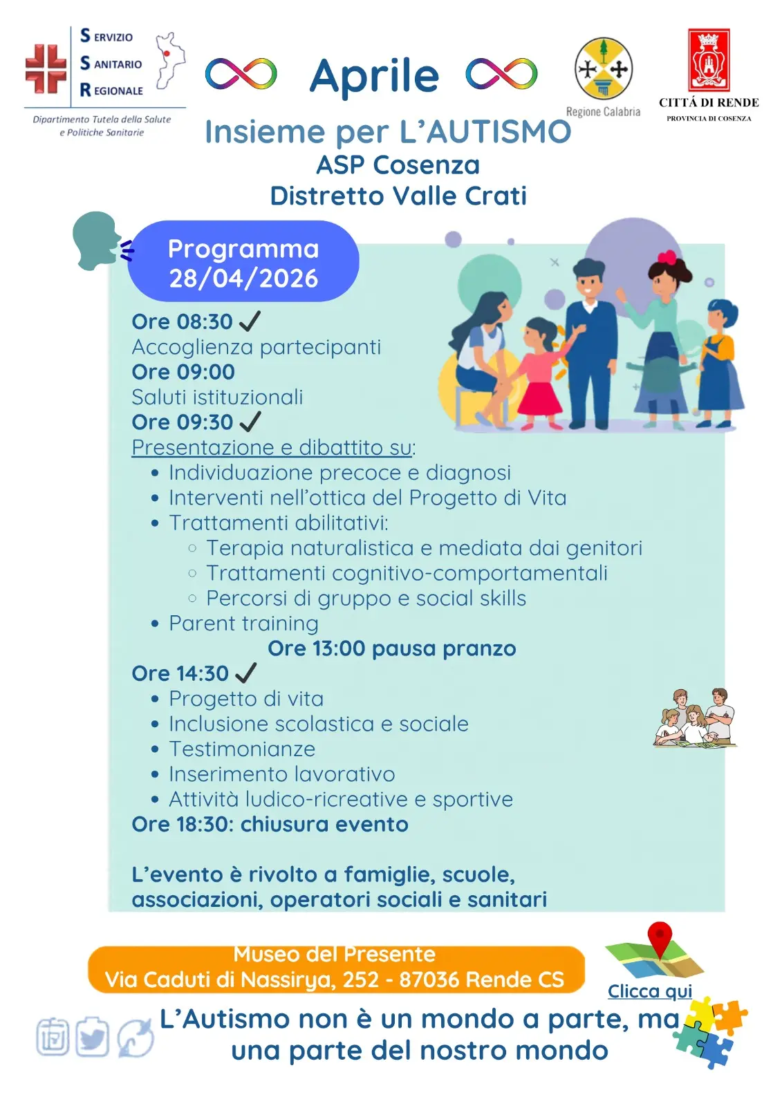 Il secondo appuntamento, in programma martedì 28 aprile al Museo del Presente di Rende, sarà dedicato proprio alla costruzione di questo percorso: dalla diagnosi al trattamento, fino alla definizione di un progetto di vita che tenga insieme bisogni, diritti e prospettive future.