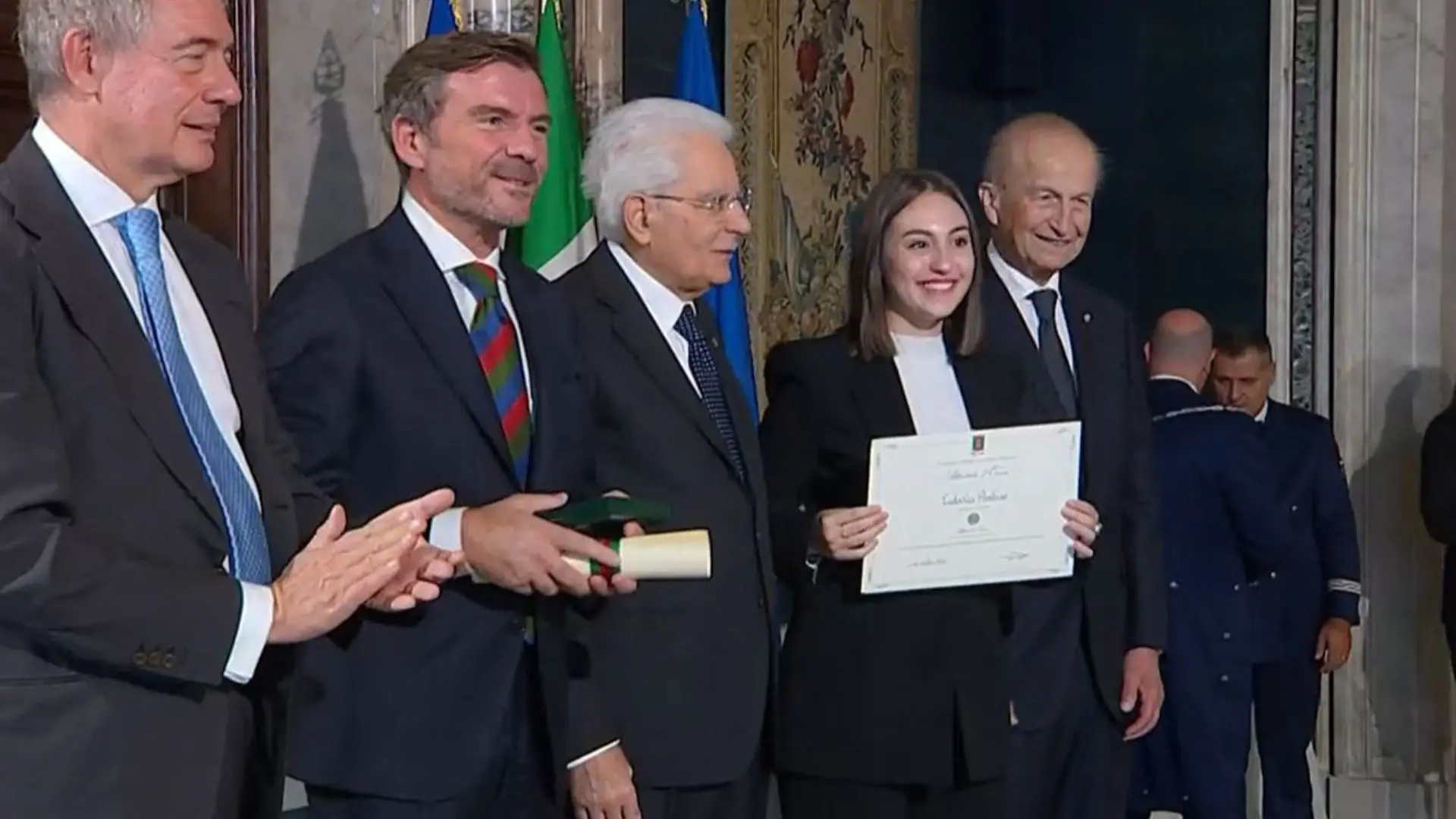 Si chiama Ludovica Pantusa, ha soli 18 anni, ed è fra i più bravi studenti italiani. Non lo diciamo noi, ma il Presidente della Repubblica, Sergio Mattarella, che poco fa l’ha insignita dell’onorificenza di “Alfiere del lavoro” insieme ad altri 24 ragazzi provenienti dai licei di tutta Italia. La cerimonia si è svolta nei saloni del Quirinale e la giovane studentessa cosentina è stata premiata in diretta su Rai Uno dal Presidente Mattarella, dal ministro delle Imprese e del Made in Italy, Adolfo Urso e dal presidente dell’associazione Cavalieri del Lavoro, Maurizio Serra.