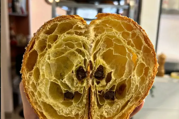Le sue creazioni della mattina vanno dai classici cornetti, al pain au chocolat, ai cinnamon bun con cannella e cardamomo, alle brioche alla crema, alle trecce sfogliate con frutta fresca. Tutto è preparato con grande tecnica e materie prime di grandissima qualità senza strizzare l’occhio a trend da social. Basta solo guardare la crema pasticcera, lucida e vellutata, da cui spuntano i puntini della bacca di vaniglia e di un vivace, ma naturale, colore giallo oro; o l’alveolatura e la leggerezza in bocca del pain au chocolat la cui sfoglia incontra la croccantezza della barretta al cioccolato fondente. «Ci sono tanti miti da sfatare qui da noi, come quello del cornetto caldo: in realtà sia il cornetto che il pain au chocolat vanno serviti a temperatura ambiente. È un po’ come entrare in pizzeria e chiedere una margherita fredda».