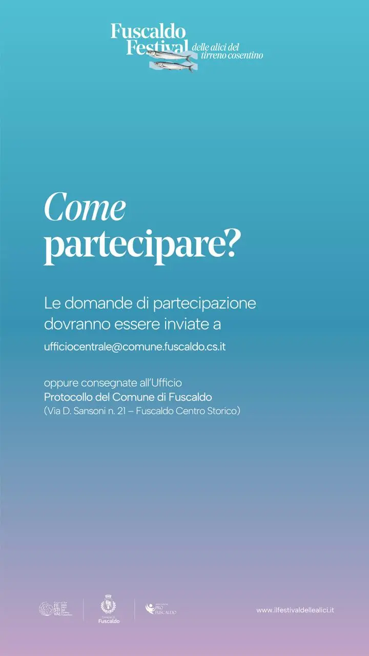 Sono aperte le candidature per partecipare come standisti a Fuscaldo, il Festival delle Alici del Tirreno Cosentino, uno degli appuntamenti più attesi dell’estate calabrese, in programma dal 30 luglio al 2 agosto a Fuscaldo Marina. L’iniziativa è rivolta ad artigiani, produttori, operatori del food e dell’enogastronomia e realtà creative interessate a entrare nel programma della manifestazione.