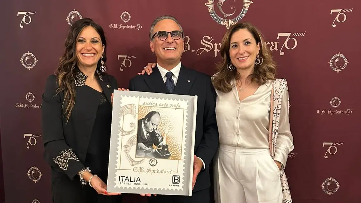 Presentato a Roma il francobollo dedicato a Giovambattista Spadafora, simbolo dell’arte orafa florense e del Made in Italy. La sindaca Succurro: «Un sigillo d’amore per la nostra città»