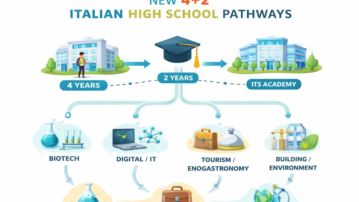 Il nuovo modello consente agli studenti di conseguire in quattro anni un diploma con lo stesso valore legale di quello quinquennale, scegliendo poi se proseguire all’università, entrare direttamente nel mondo del lavoro o specializzarsi ulteriormente attraverso un biennio negli ITS. Una scelta che punta a ridurre i tempi di ingresso nel mercato occupazionale, rafforzando al contempo la qualità delle competenze.
