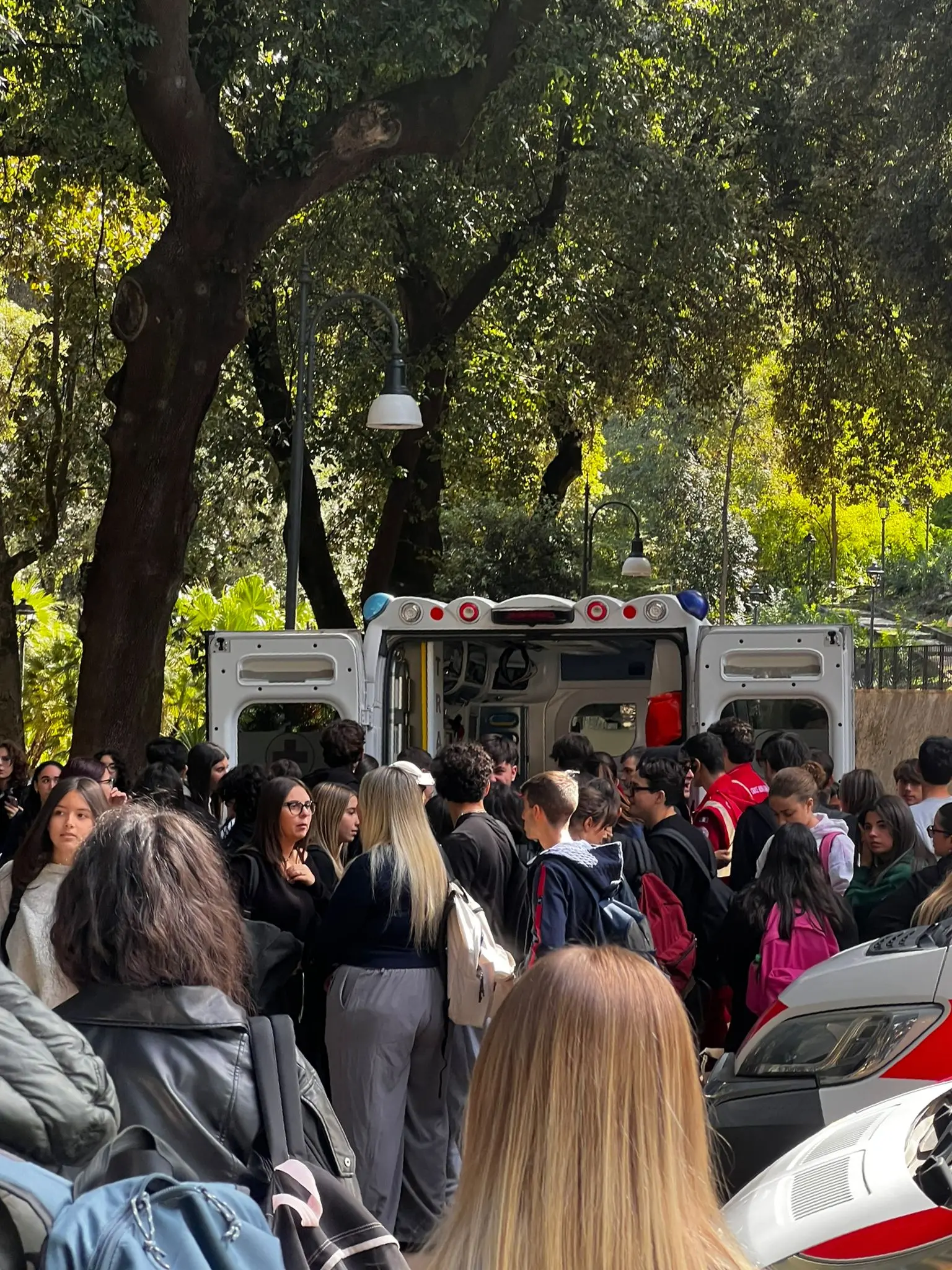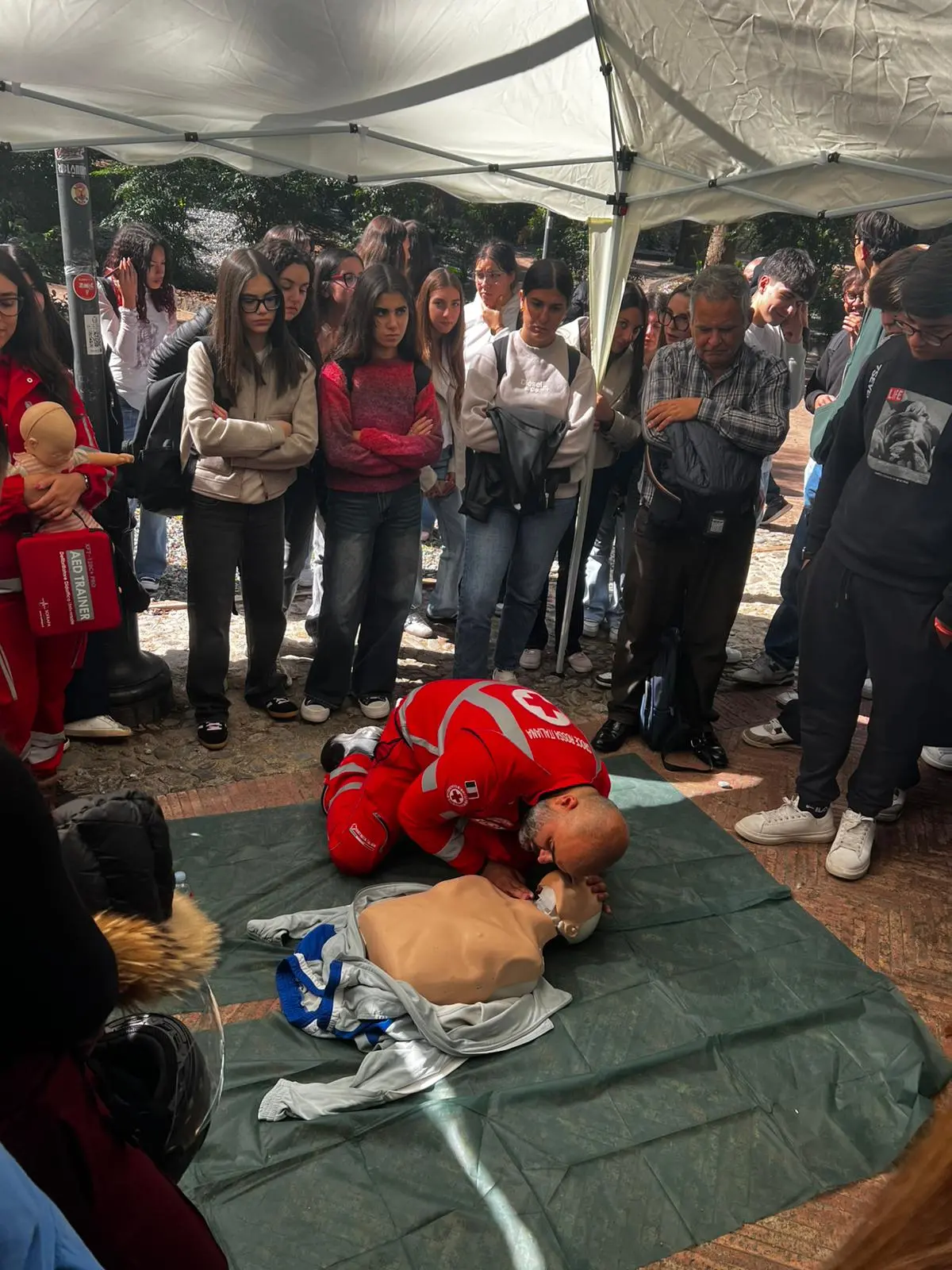 Gli studenti hanno avuto poi l'opportunità di visitare da vicino i punti operativi allestiti dalle forze d'emergenza nella villa sottostante la scuola. Dalle tende da campo della Protezione Civile, allestite in pochi minuti e destinate a dare ospitalità agli sfollati o a diventare postazioni sanitarie per il primo soccorso, ai mezzi dei Vigili del Fuoco con i loro diversi impieghi, ai volontari della Croce Rossa Italiana che hanno fornito una formazione cruciale, mostrando e facendo esercitare gli studenti sulle tecniche di Rianimazione Cardio Respiratoria, l'uso del defibrillatore e la fondamentale manovra di disostruzione delle vie aeree. Inoltre, sono state insegnate le procedure indicate nel soccorso e trasporto di traumatizzati, mostrando da vicino come è fatta da dentro un’ambulanza.