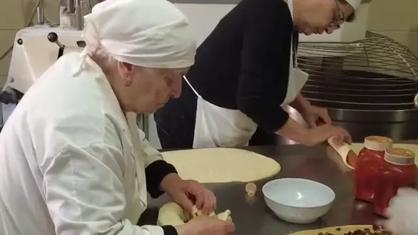 Oggi ha 84 anni e non lavora più al forno, che ha lasciato con orgoglio all’ultimo dei suoi quattro figli, Pietro, ma appena può torna nel luogo che ha amato per una vita intera e rivive le emozioni e la fatica dell’impasto. Di quegli anni è rimasto poco oggi nel locale del panificio: il vecchio tavolo di legno massello che dominava la stanza è stato sostituito da uno più efficiente di acciaio, come le altre strumentazioni che si sono adeguate alle normative vigenti. Eppure qualcosa è ancora lì sopravvissuto ai cambiamenti: le tavole di legno, le cosiddette madie, ricoperte di tessuto di canapa, su cui vengono poggiati i panetti a lievitare.